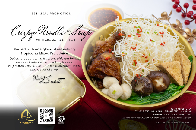 Warm your day with our Crispy Noodle Soup — crunchy golden noodles soaked in rich, flavorful broth, topped with fresh vegetables & seafood delights.